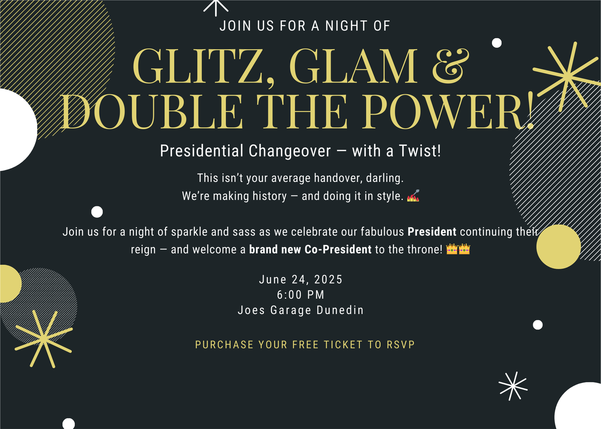 Join us for a night of sparkle and sass as we celebrate our fabulous President continuing their reign — and welcome a brand new Co-President to the throne! 👑👑